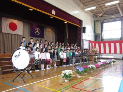 42名の新入生を迎えました。これから楽しいことをたくさんしたり、一緒に勉強も頑張っていきましょう。よろしくお願いします。2年生の歓迎の演技もすばらしかったです。1年間の成長の成果をしっかり感じました。