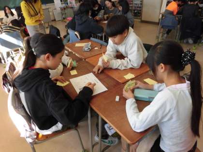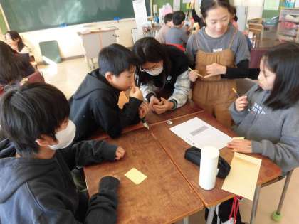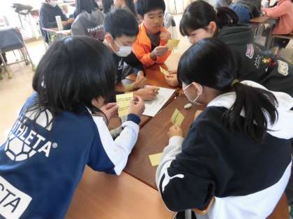 班の友だちと話し合って、お題解決に取り組んでいました。