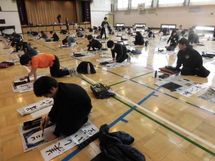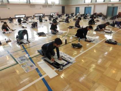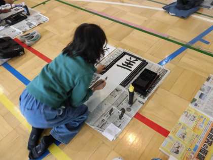 半紙と手本をじっと見つめてなかなか書き出さない子