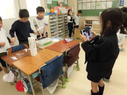 まとめの学習をお互いにiPadで動画にまとめていました。
