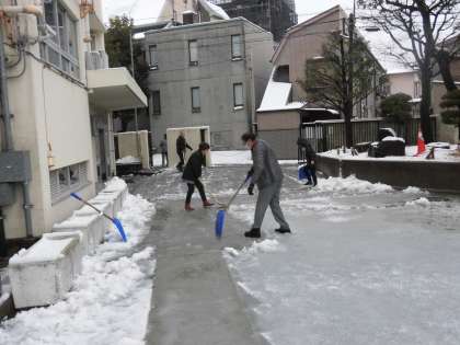 子どもたちが登校時に通る道の雪かきをしてくださっていました。