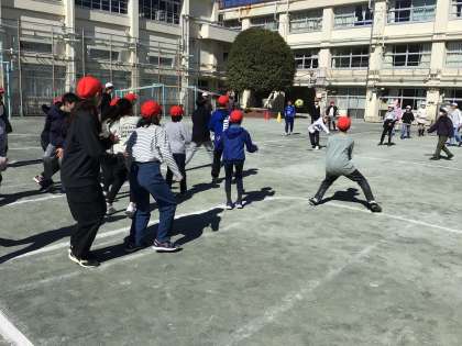 今日は2学年が集まって、ドッジボールと王様陣取りをして楽しみました。