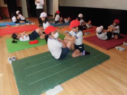 今日行った種目は、上体起こし、長座体前屈、反復横跳び、立ち幅跳びです。