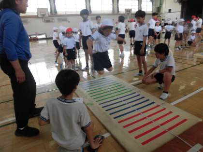 一緒に反復横跳びや上体起こし、立ち幅跳びなどの