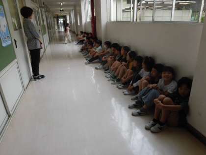 検診後に廊下で静かに待っている2年生に出会いました。