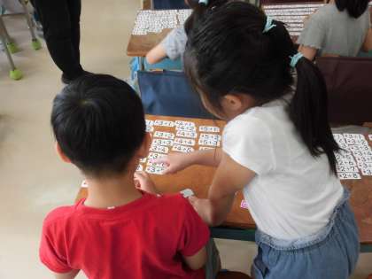 続いて、まず、1+1、1+2と左側が1のカードを並べ、