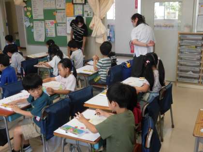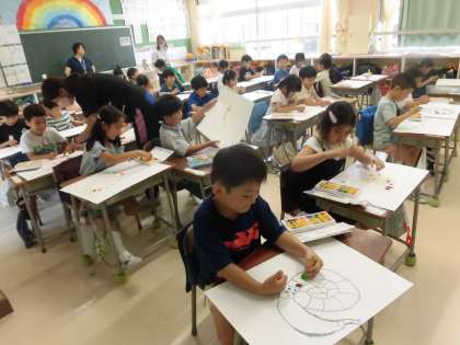図工「カラフルかたつむり」は、かたつむりの殻に