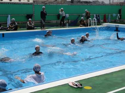 水着ではなく、洋服を着ていると、洋服が水を含み、「重たい!」と子供たちから声が上がっていました。また、「靴が重たい!」といった声もありました。