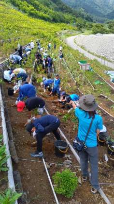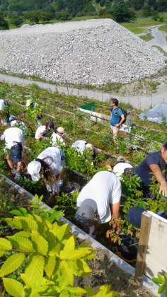 足尾の山で植樹体験しています。