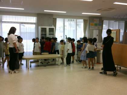 1校時には高学年が、2校時には低学年が学校探検をしました。