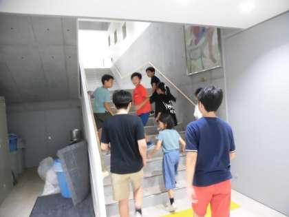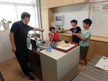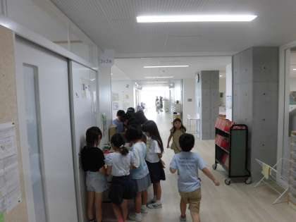 5年生が学校探検&夏休み自由研究作品見学中でした。