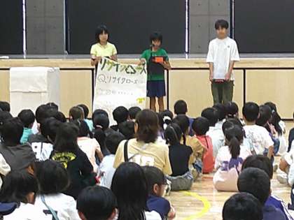 校長先生のお話の後、まずは代表委員より「リサイクローズ」のお知らせがありました。