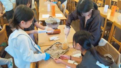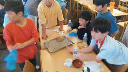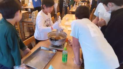 コンニャク作りに挑戦している5年生、