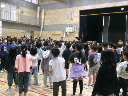 今月の音楽朝会は、全校で「ふるさと」の合唱を行いました。