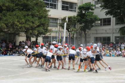 5・6年生の団体競技の棒倒し「バトル×フラッグ」と日本の踊り「八木節」です。