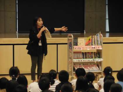 集まったベルマークで図書館の本をいただいたことを紹介してくださいました。