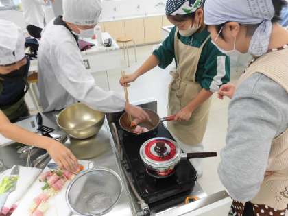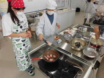6年生家庭科 調理実習「野菜のベーコン巻き 他」