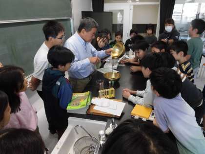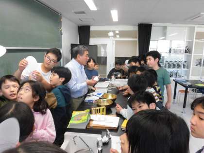 食塩の結晶の様子を大型テレビに映して見せてもらったり、