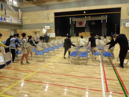 式場となる体育館の椅子並べや
