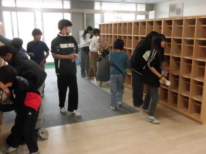 来校される方々の靴箱となる場所の清掃、