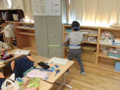 剣を作ったり、カチューシャを編んだりして