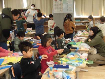 それを画用紙やスズランテープなどの材料で