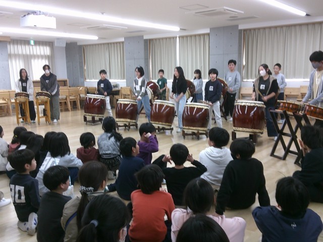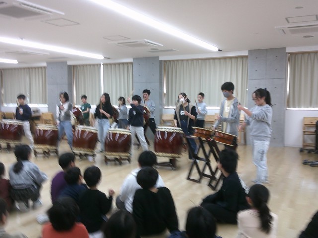 力強い太鼓の音とかけ声、そして大きな動きで、見に来ていた子どもたち、保護者の方々は「かっこいい~!」と、引き込まれていっていました。
