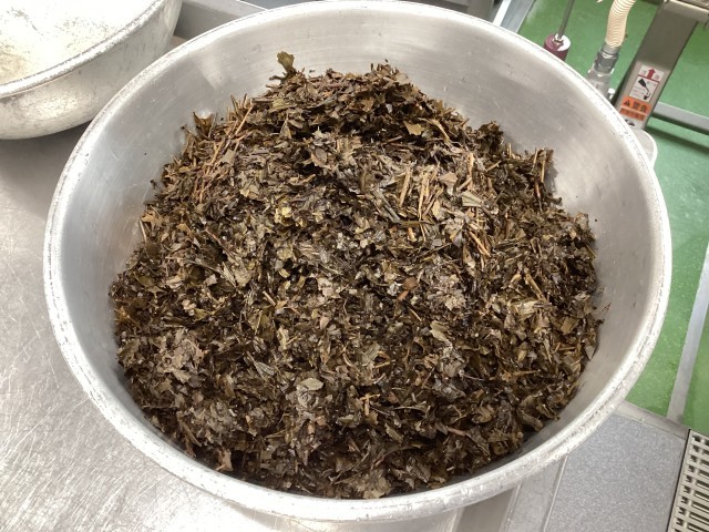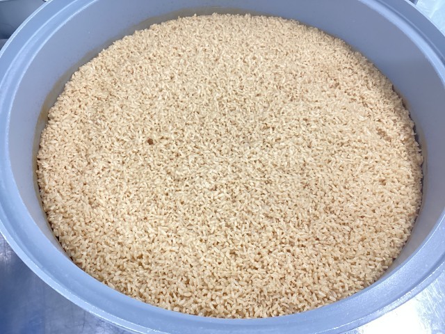 今日の給食は、茶めし、青菜とじゃこのふりかけ、おでん、ブラウニー、牛乳です。今日の給食は、校長先生のリクエストメニューでした。茶めしは、ほうじ茶を煮出し、炊きました。