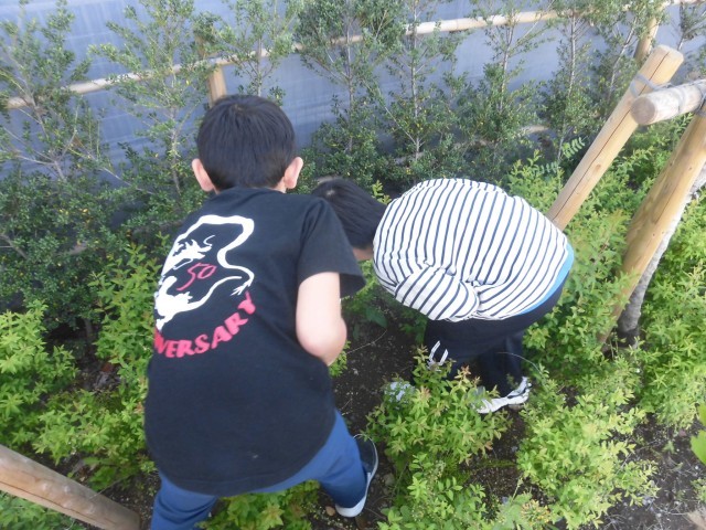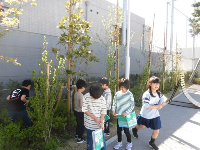「春に関係するもの見つかった?」と尋ねると、「チューリップやタンポポを見つけました!」