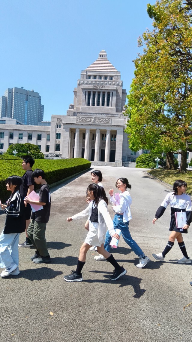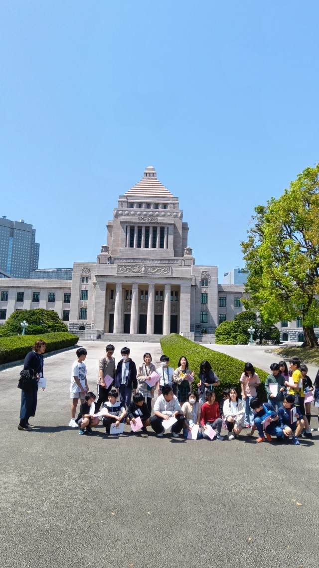 国会議事堂の前で記念撮影をし、このあと体験プログラムに行きます。