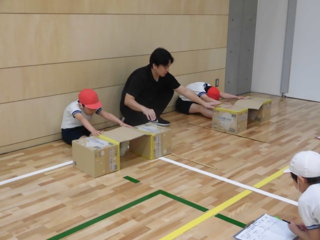 長座体前屈(体の柔らかさ)と上体起こし(腹筋)の計測の様子です。