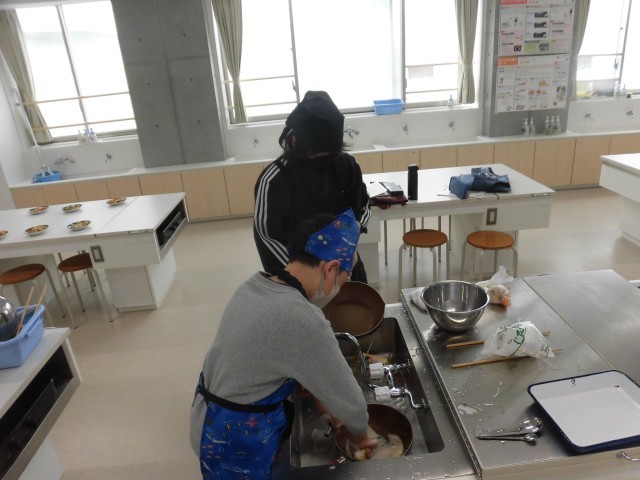 調理が終わった後には、使った調理器具を丁寧に洗っていました。