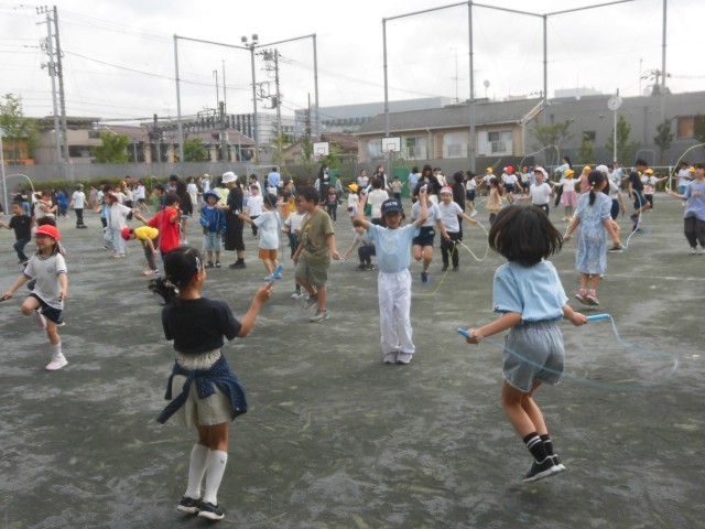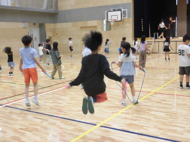 5月15日(木)、体育朝会がありました。今回は、短縄跳びです。