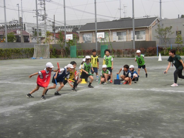 チームごとにバトンパスの練習をした後、いよいよ本番です。