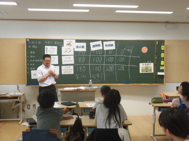 6年生で「租税教室」を行いました。これは、子ども達に税の意義や役割を正しく理解してもらうことを目的とした出前授業です。