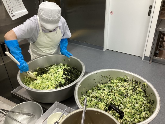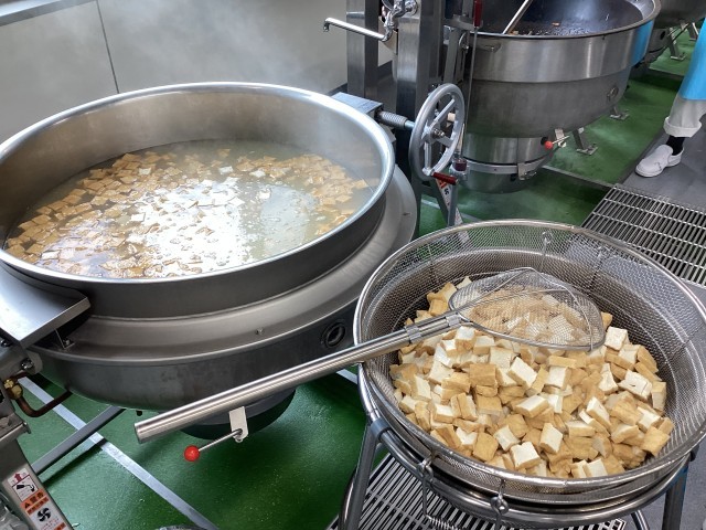 今日の給食は、家常豆腐丼(じゃーじゃんどうふどん)、チョレギサラダ、甘夏、牛乳です。