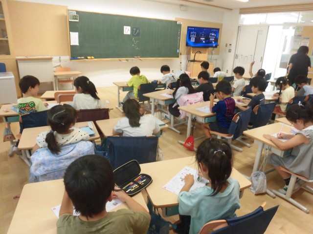 教室では、1年生がひらがなプリントをしていました。姿勢もよく、静かに取り組んでおり、こちらも大変立派です。