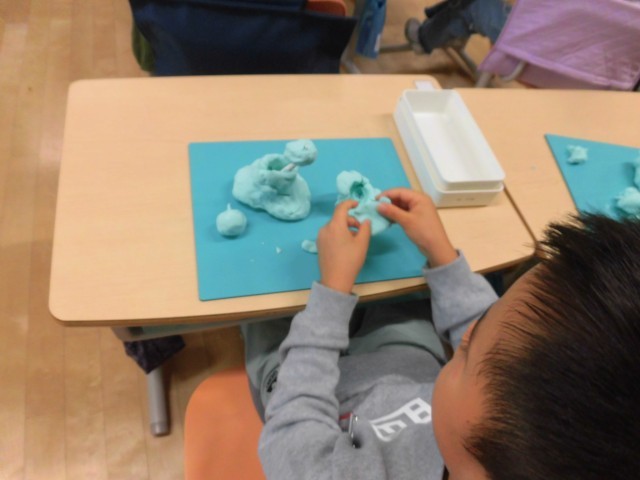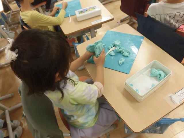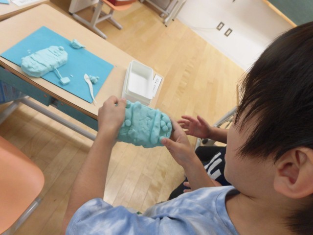 粘土で火山を表現したり、食べ物を表現したり、中にはゲーム機を作っている子もいました。