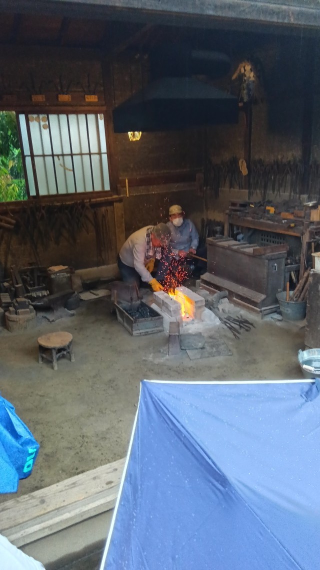 鍛冶屋の作業風景も見せてもらいました。子ども達にも大評判です。