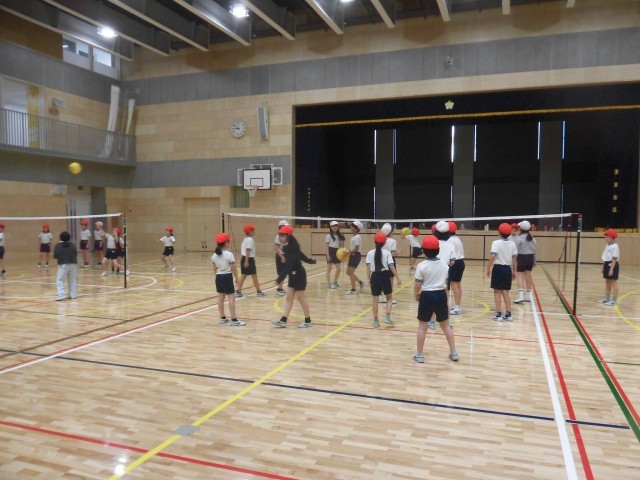 キャッチありのバレーボールのような簡易型ゲームを楽しんでいます。