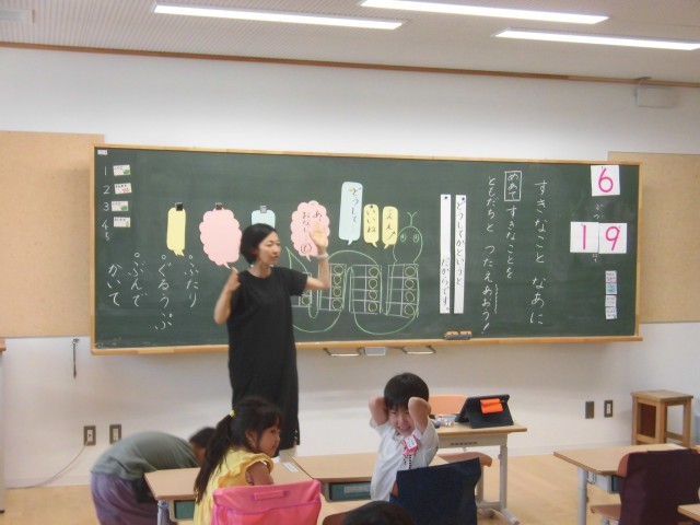 1年生は、国語で自分の好きなことを伝え合う学習をしていました。
