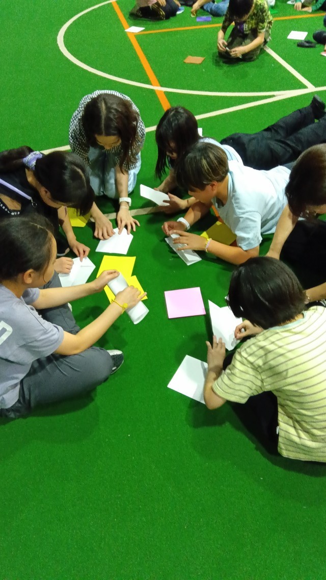 2つ目のレクは、紙飛行機飛ばし大会です。