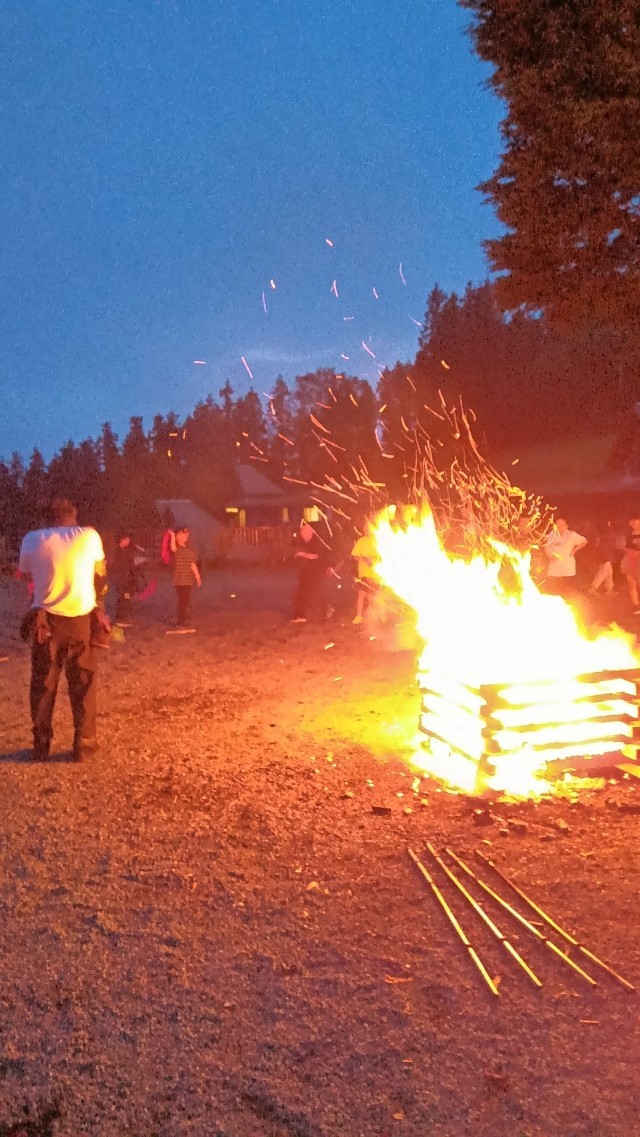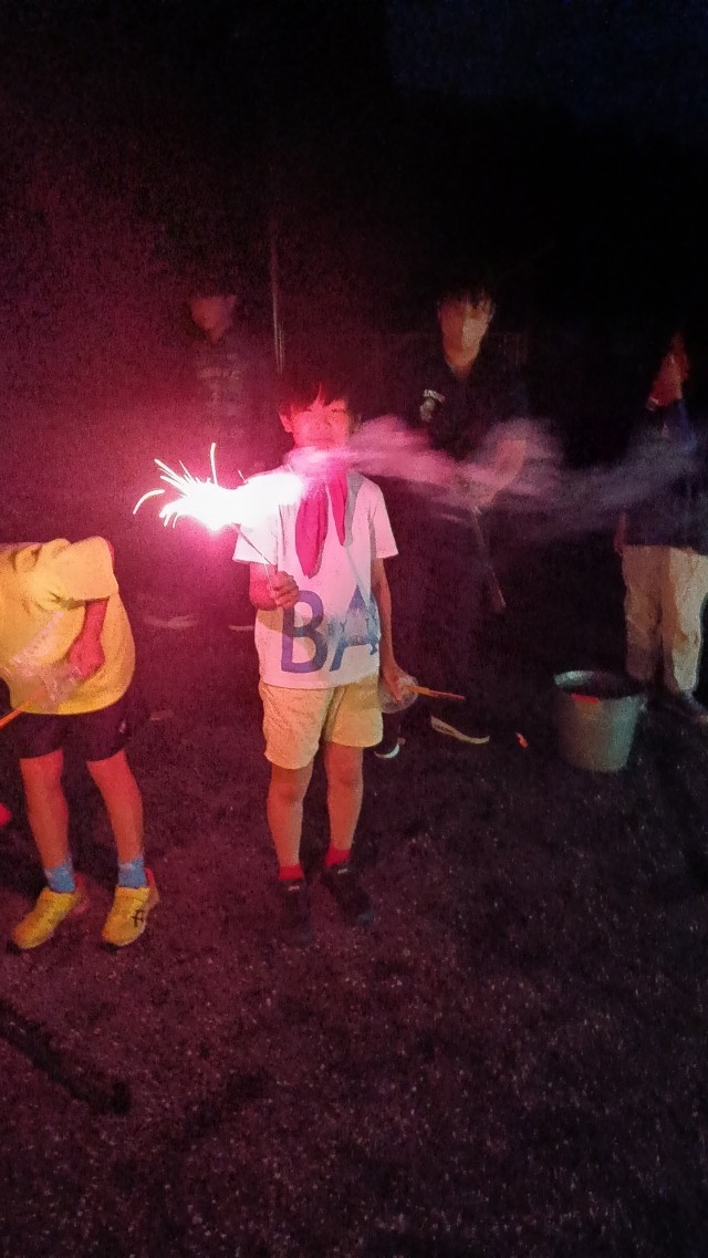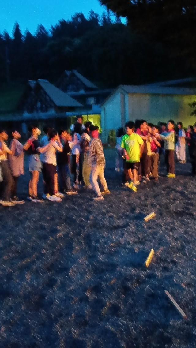 キャンプファイヤーが始まりました。歌やダンス、ゲームなどで盛り上がっています。