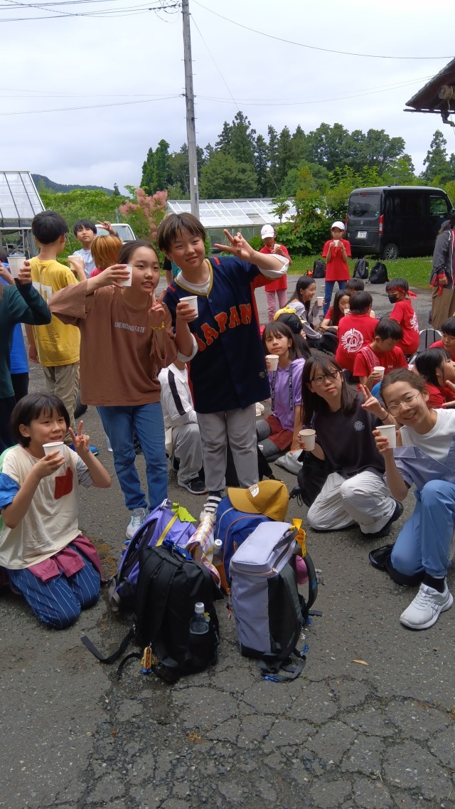 お話を聞いたあと、果樹園産のリンゴジュースをいただきました。あちこちで、「おいしい〜!」という声が上がっていました。