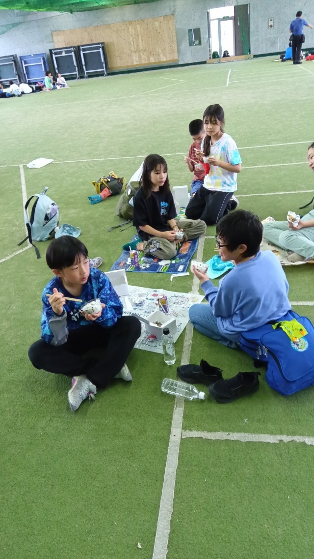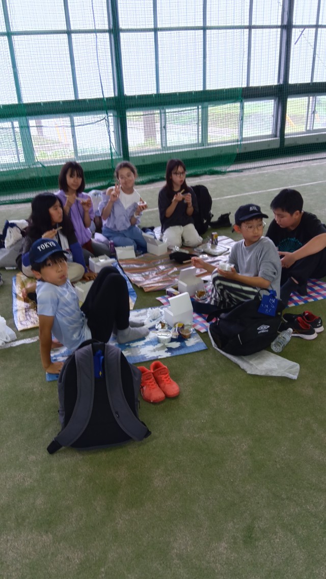 ちょうど雨が降り始めたので、川場村スポーツクラブの屋内をお借りしてお昼ご飯を食べます。