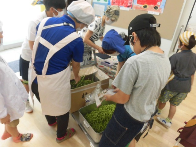 6月30日(月)、枝豆の収穫(枝から取り外す)体験