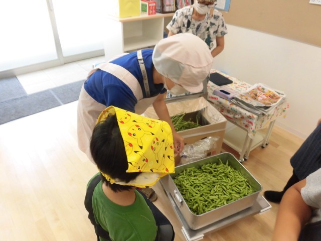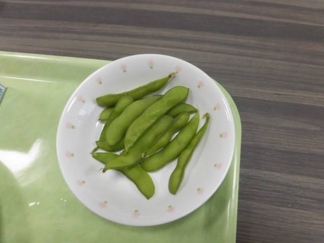 収穫した枝豆は、今日の給食で出されました。