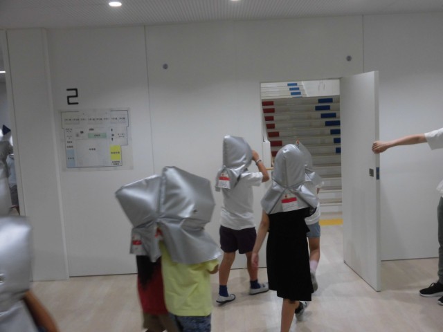 本日、避難訓練を実施しました。今回の訓練は、火災が発生し防火扉を閉めた場合を想定した訓練でした。