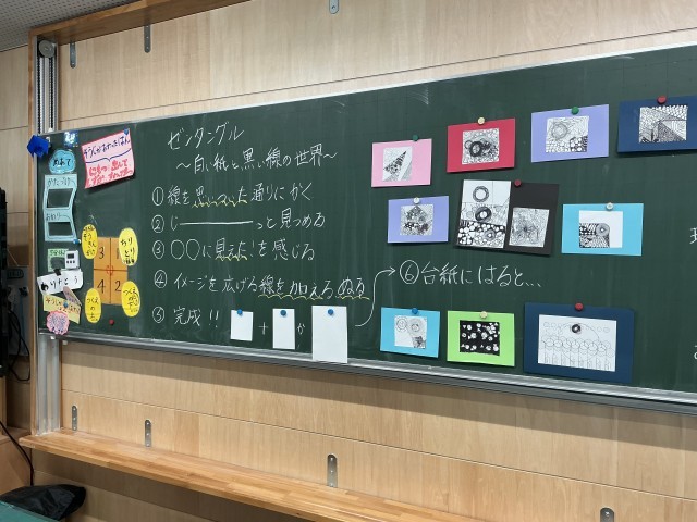 5年生の図工の様子です。ゼンタングルという技法を用いた作品づくりに取り組んでいま...