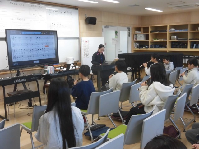 リコーダーのきれいな音色が聞こえてきたので音楽室に行ってみると、4年生たちがリコ...